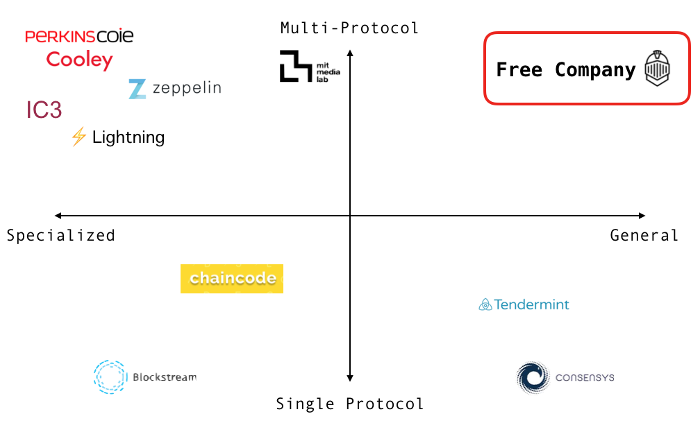 Multi-protocol service providers (advisors, academics, law firms, PR agencies, trade organizations) do some of the most important work across the ecosystem, but their approach is less than ideal for the multidisciplinary world of blockchain technologies, where questions of law, security, product, cryptography, and governance intertwine and speak to each other.